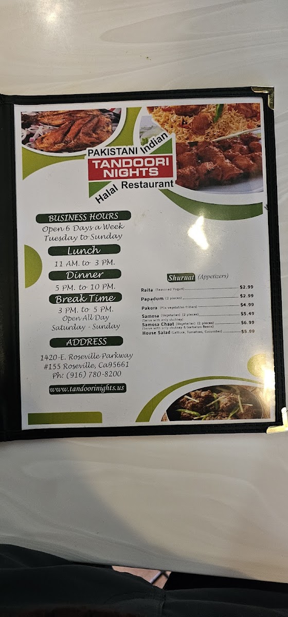 At Tandoori Nights Menu, you'll embark on a flavorful journey through the rich, smoky aromas of traditional Indian cuisine. From the moment you walk in, the air is filled with the irresistible scents of tandoori grills and fresh spices. The menu offers an array of mouthwatering dishes, including tender, charred meats, vibrant curries, and delectable vegetarian options, all prepared with the finest ingredients. Whether you're craving a classic chicken tikka, the rich flavors of lamb rogan josh, or the delightful crispiness of naan, there's something to satisfy every palate. The vibrant spices, combined with the warmth and comfort of every dish, create an unforgettable dining experience that will have you coming back for more.